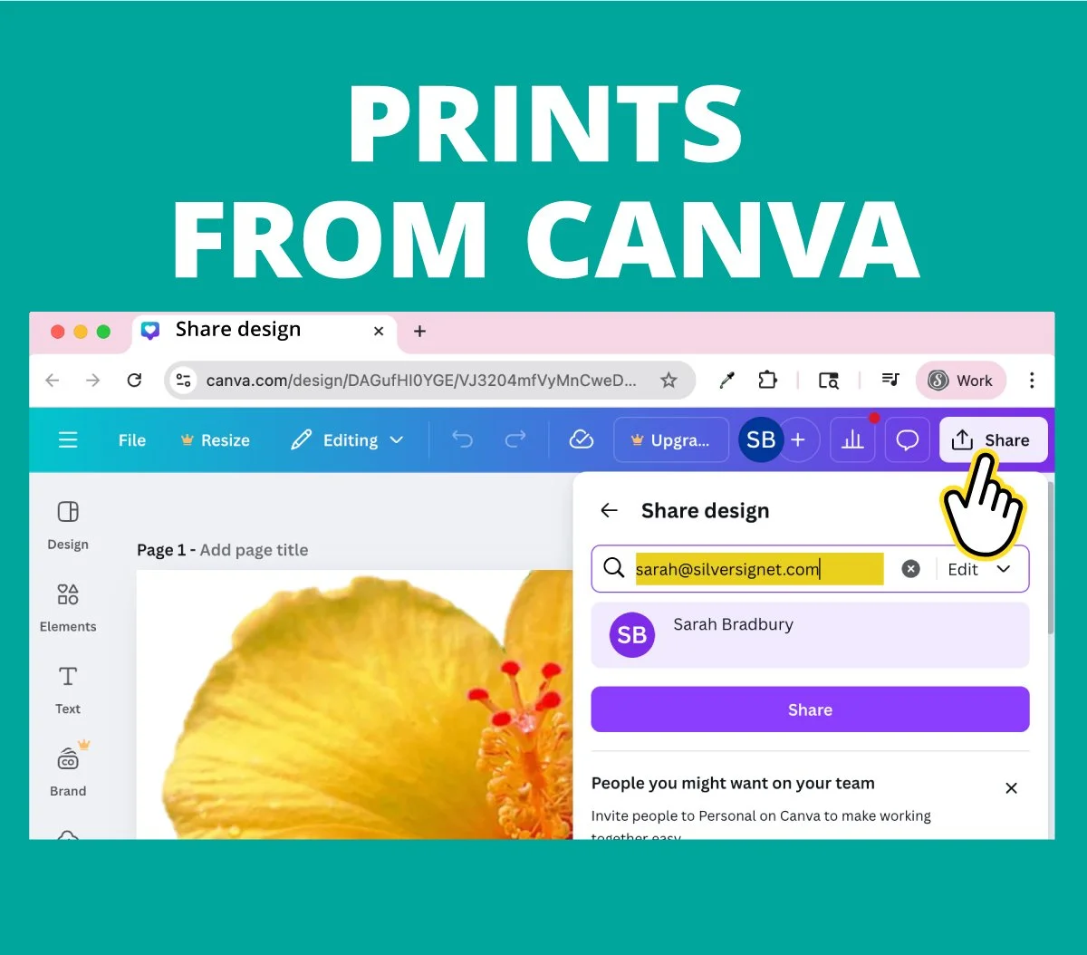 Share your Canva file or download your file and email to us at sarah@silversignet.com
